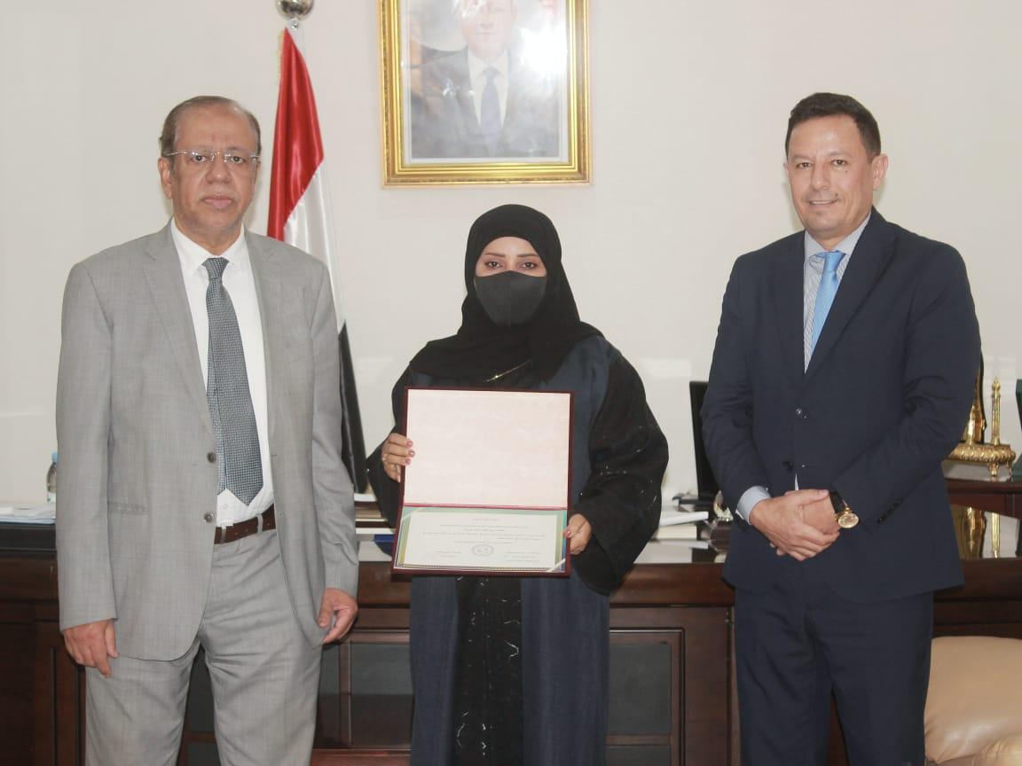 وفي ختام الحفل، قام السفير بافقيه ونائبه بتسليم الدروع التقديرية وشهادات التكريم للدبلوماسيين المكرّمين، وسط أجواء سادها التقدير والوفاء وروح الزمالة.